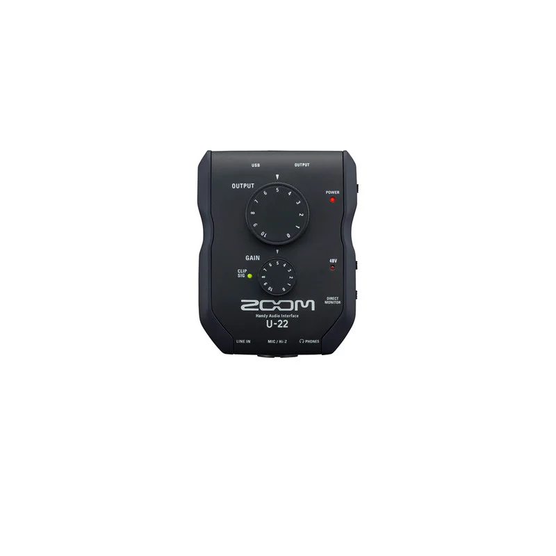 کارت صدا و رابط صوتی U-22 یک محصول ویژه از کمپانی ZOOM برای ضبط آسان توسط موبایل و سیستم های کامپیوتری است که با اندازه جمع و جور و سبک خود میتواند گزینه بسیار مناسبی برای حمل باشد. این رابط صوتی ارزان قیمت با دو ورودی و خروجی بصورت کاملا پرتابل طراحی شده است تا راه کار ویژه ای برای ضبط بروی آیفون و آیپد یا سیستم های کامپیوتری مکینتاش و ویندوز باشد. این دستگاه به عنوان یک اینترفیس، دارای پری امپ مناسبی به نسبت محصولات رقبا است تا شما وکال، ساز و صداهای دیگر را با کیفیتی بالا و شفاف، در نرخ نمونه برداری 24 بیت 96 کیلوهرتز نمونه برداری و ضبط نمایید. U-22 مانند مدل های U-24 و U-44 صدایی فوق العاده ارائه می دهد و از نظر اندازه نیز دارای ابعادی کوچکتر است. برای ضبط و میکس با تاخیر صفر، سوییچ مانیتورینگ مستقیم U-22 به شما اجازه می دهد تا سیگنال ها را قبل از ورود به کامپیوتر بشنوید